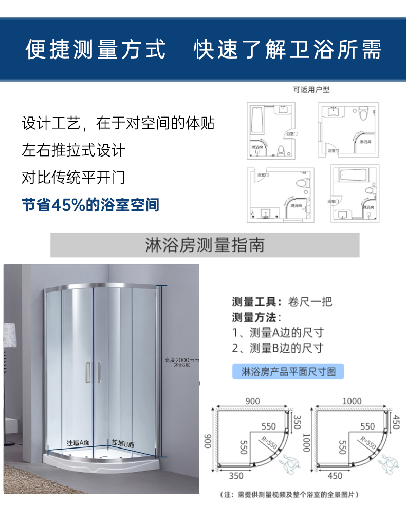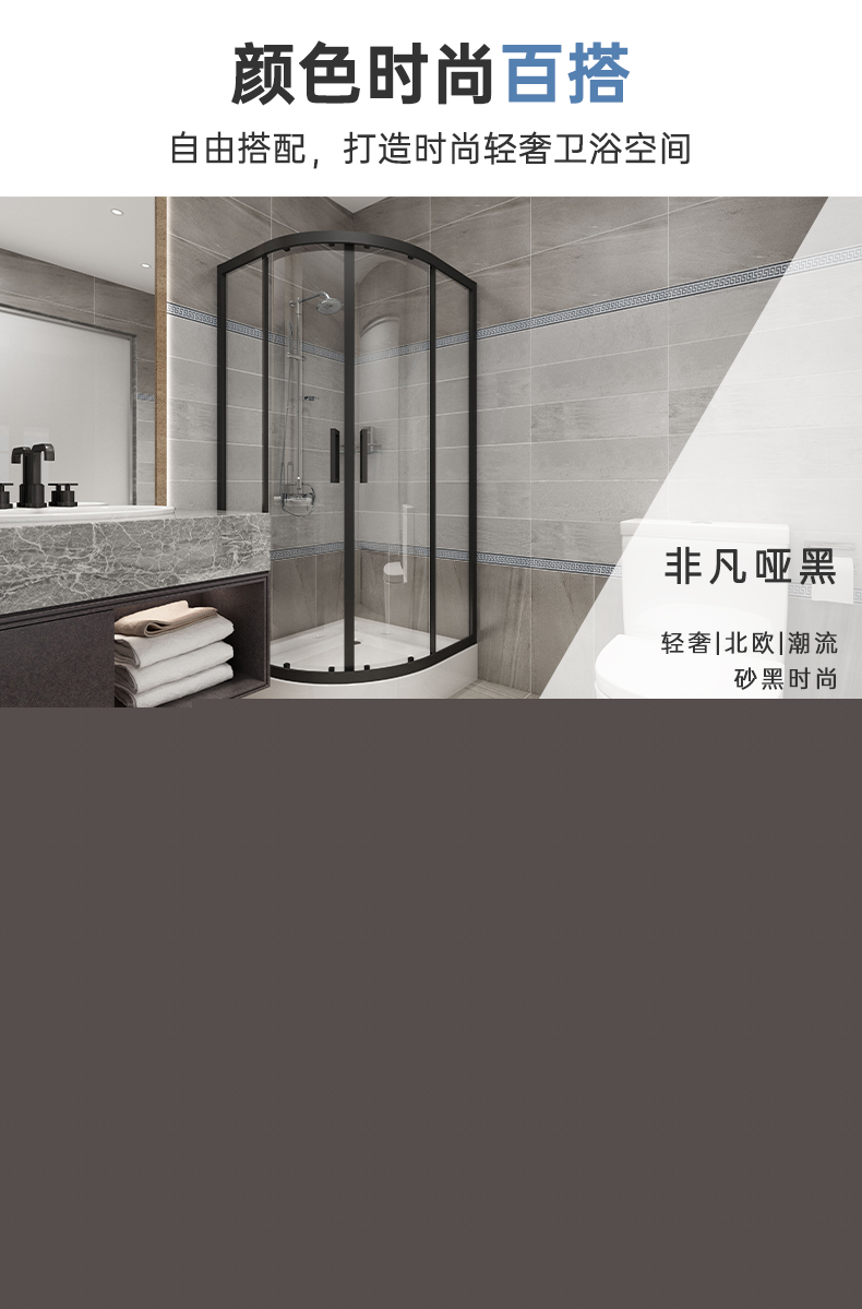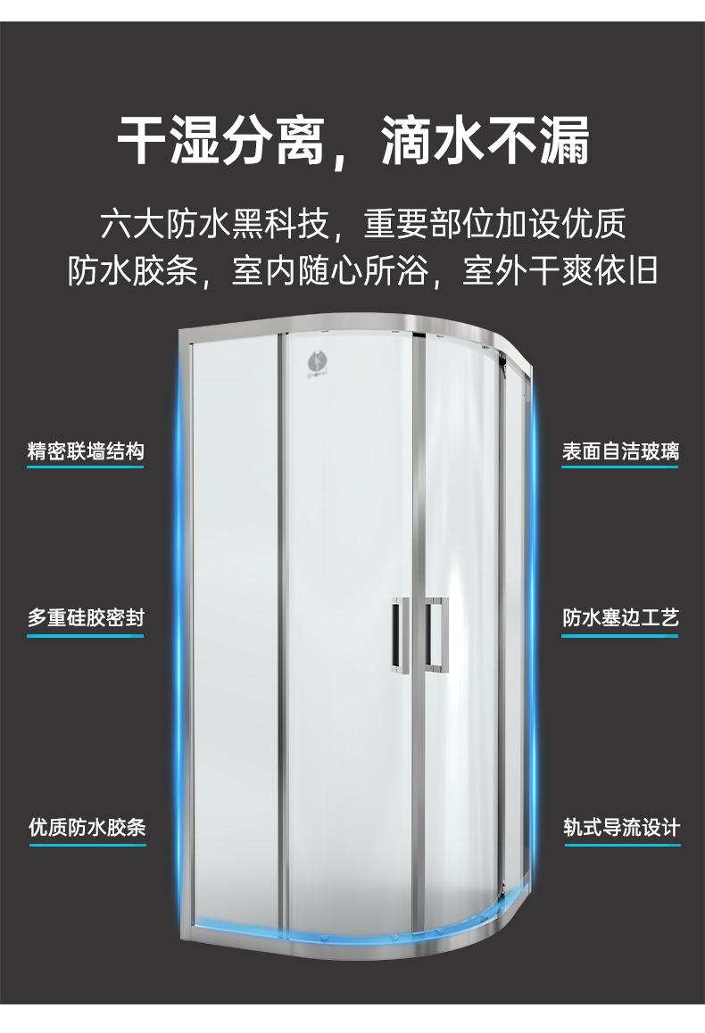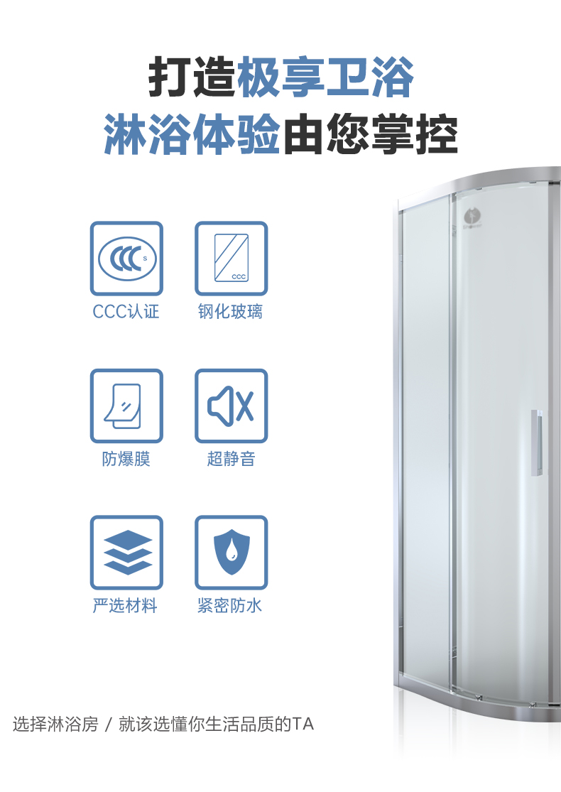 • 設計理念:弧形淋浴房以其大洋洲的雄偉壯麗姿態,巍巍立于高聳的云間,從拉桿到拉手、合頁都用靚麗的光澤和搭配合理的結構,詮釋了登頂的高貴氣質和典雅的華貴氣息,有如浴室中的穿云鐵索,吸納著萬千視野。